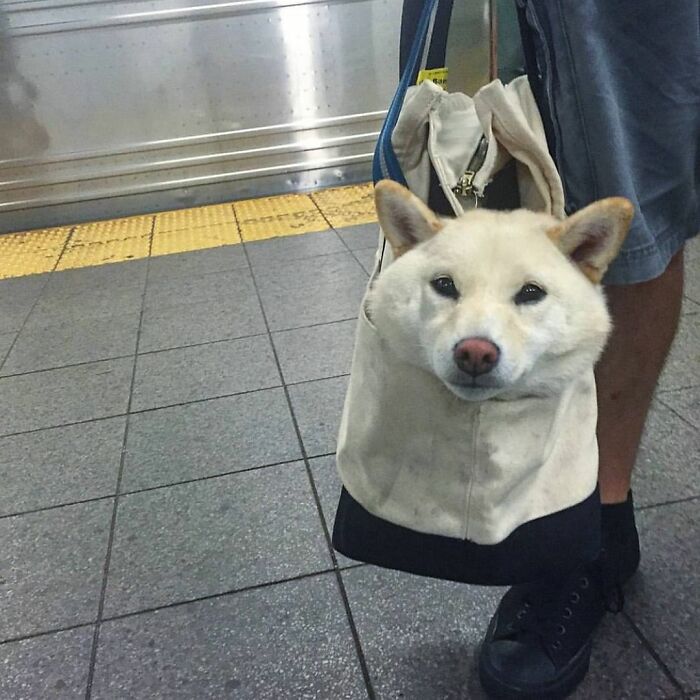Of course, we’re referring to an Instagram feed dedicated only to sharing photographs of dogs chilling in bags while being carried from place A to point B. Yes, there is such a thing.